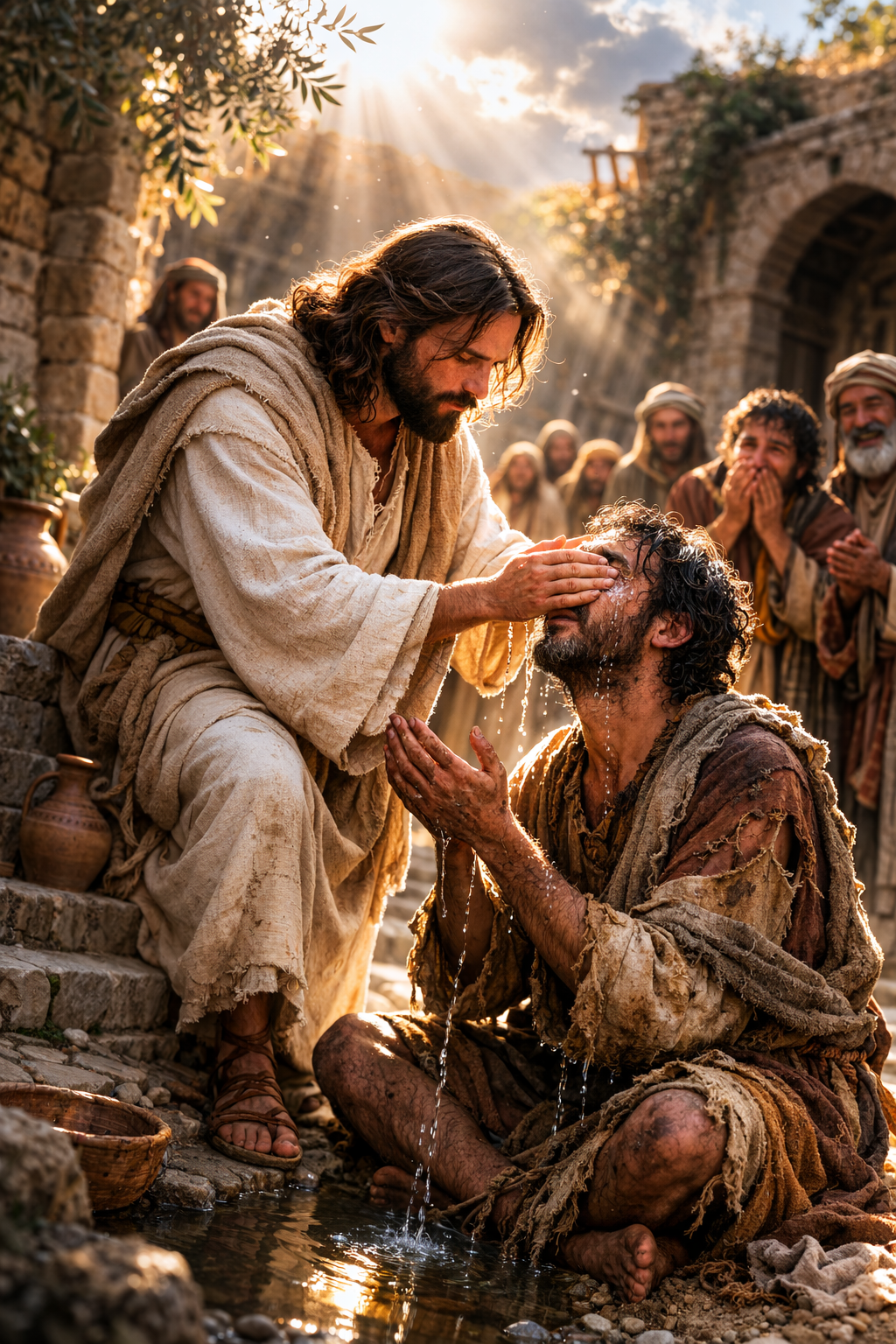 Giovanni stesso lo spiega: Siloe significa "Inviato". In greco Σιλωάμ (Siloám), traduzione dell'ebraico שִׁלֹחַ (Shiloach), che indica ciò che è mandato, inviato. Il simbolismo è evidente: Cristo è l'Inviato del Padre. Gesù stesso lo afferma più volte nel Vangelo: «Le opere che il Padre mi ha dato da compiere testimoniano che il Padre mi ha mandato» (Gv 5,36). Lavarsi nella piscina che porta il nome dell'"Inviato" significa quindi, simbolicamente, entrare in relazione con Cristo, lasciarsi raggiungere dalla sua missione salvifica. Ma il gesto del lavarsi richiama anche un altro grande simbolo della tradizione cristiana: il battesimo. Fin dai primi secoli i cristiani hanno letto questo episodio come una vera catechesi battesimale. Nel battesimo l'uomo passa dalle tenebre alla luce, dalla vecchia vita alla vita nuova. Non è soltanto un rito, ma una vera nascita spirituale. Gesù lo dirà chiaramente a Nicodemo: «Se uno non nasce da acqua e Spirito, non può entrare nel Regno di Dio» (Gv 3,5). Il lavarsi del cieco diventa così il segno di un passaggio: dalle tenebre alla luce. Non a caso nella tradizione antica il battesimo era chiamato φωτισμός (phōtismós), cioè illuminazione.